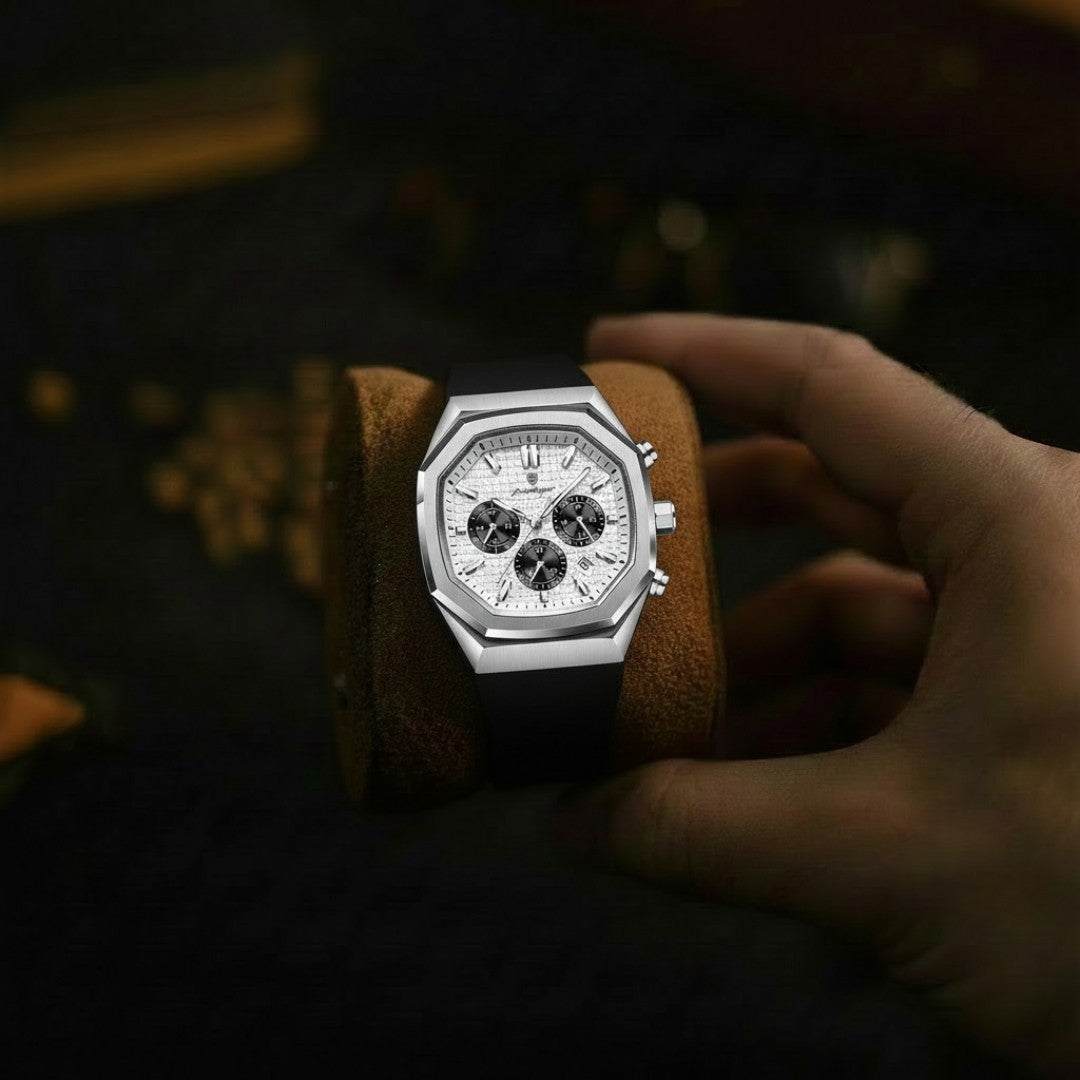 The Darvien® Octaris is more than a sports watch — it’s a symbol of motion, mastery, and modern refinement. Designed for the man who leads with confidence, whether in the gym or the boardroom, it represents the rhythm of ambition and precision. Every second marked by the Octaris echoes the Darvien® ideal: timeless performance, effortless power.