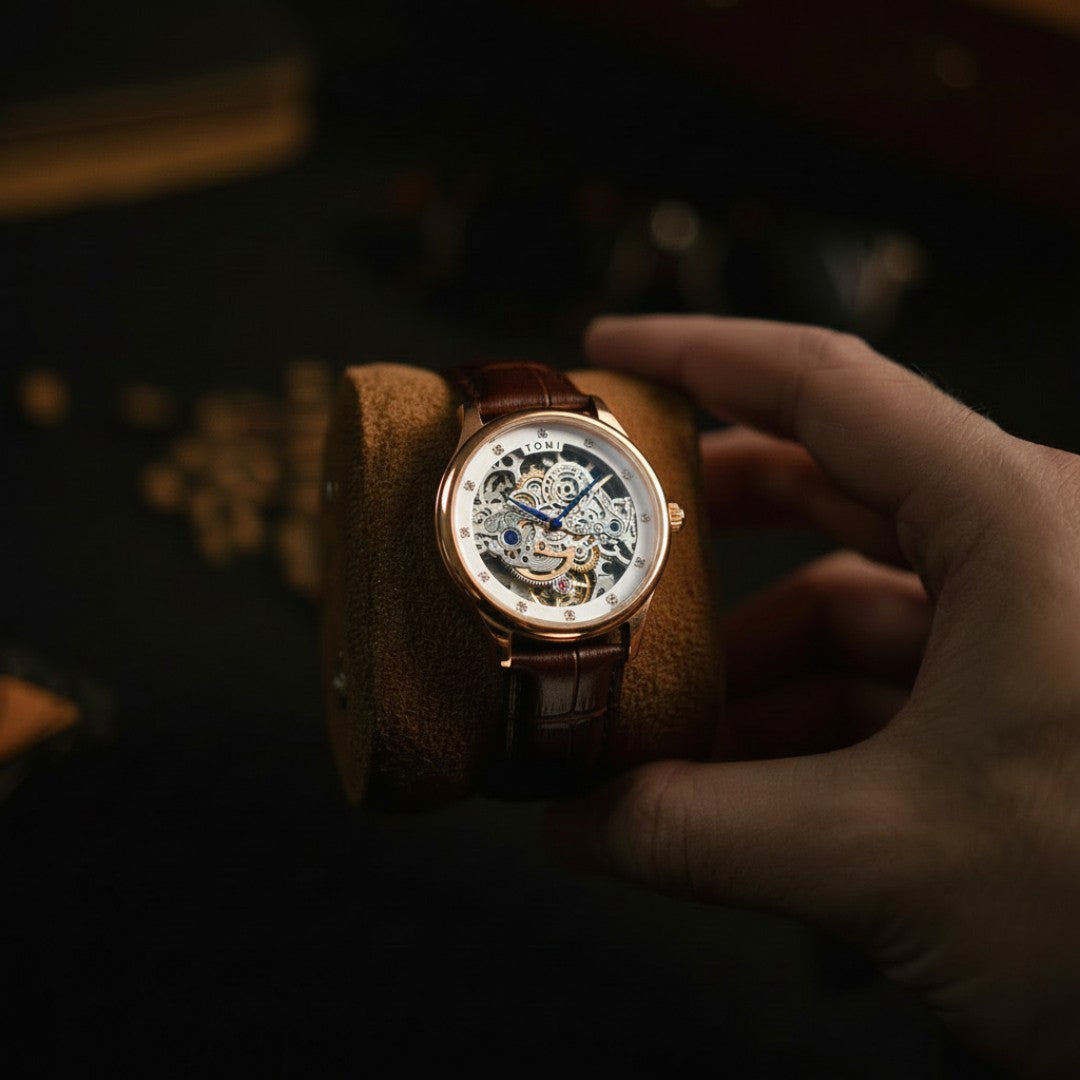 Powered by a precise Quartz movement, the Spector ensures reliable accuracy in every moment. The PU leather straps provide durability and comfort, while the hollow diamond-accent design adds a subtle touch of elegance. Though minimalist in form, its craftsmanship is meticulous — built for those who appreciate refined details and modern aesthetics.